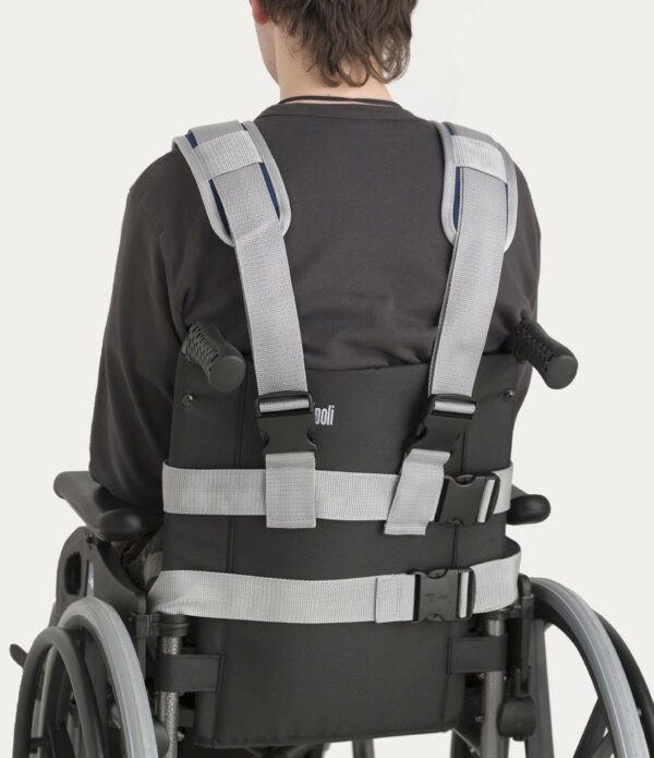 • Consta de un cinturón abdominal con pieza perineal y tirantes para la estabilización del tronco.