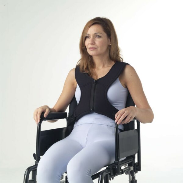 Facilita un correcto posicionamiento del tronco y proporciona un soporte dinámico en caso de movimientos espásticos.